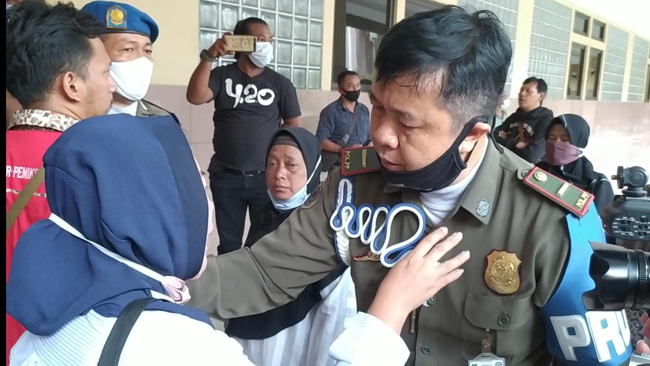 Saling dorongpun tidak terhindarkan antara warga yang rata-rata ibu-ibu dan aparat Satpol PP Kota Tangerang, bahkan salah seorang warga pun ada yang pingsan. Warga kesal karena walikota tidak menemui warga.