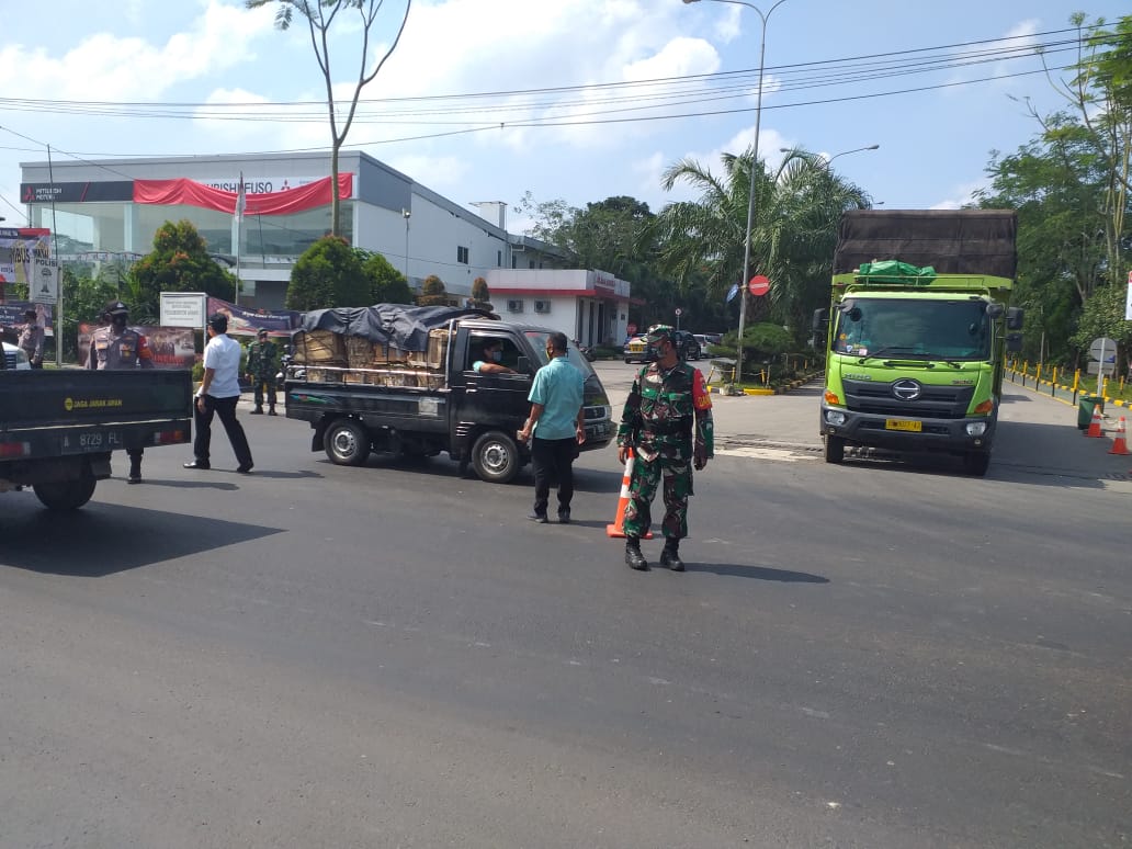 Kabupaten Tangerang – Menjelang di berlakukannya Tatanan baru (New Normal) dan memutus penyebaran virus Covid-19, personil Koramil 13/Cisoka Kodim 0510/Trs, Korem 052/Wkr bersama Tri Pilar melakukan Penegakan Disiplin Mematuhi Protokol Kesehatan (PDMPK) dan PSBB lanjuta Chek Poin wilayah Koramil 13/Cisoka.