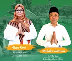 Blitar – Pertarungan pemilihan Bupati dan Wakil Bupati Blitar Pilkada serentak tanggal 9 Desember telah berahir dengan kemenangan di kubu Rini Syarifah berpasangan dengan Rahmad Santoso,dari hasil hitung cepat kemarin petang menunjukan hasilperolehan suara masing-masing pasangan calon data yang masuk pukul 17.00 WIB, Petahana sulit engejar ketertinggalanya Rijanto-Marhaenis dengan perolehan suara 39,42 persen, sedangkam pasangan Rini Syarifan – Rahmad Santoso dengan suara masuk 56,66 persen. Dn sebanyak 3,93 persen suara tidak sah.