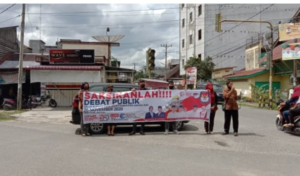 Ajakan tersebut dilakukan menggunakan pengeras suara (megaphone) sembari membentangkan spanduk jadwal debat publik yang akan dilaksanakan KPU Asahan di Hotel Four Points Medan pada Kamis 26 November 2020.