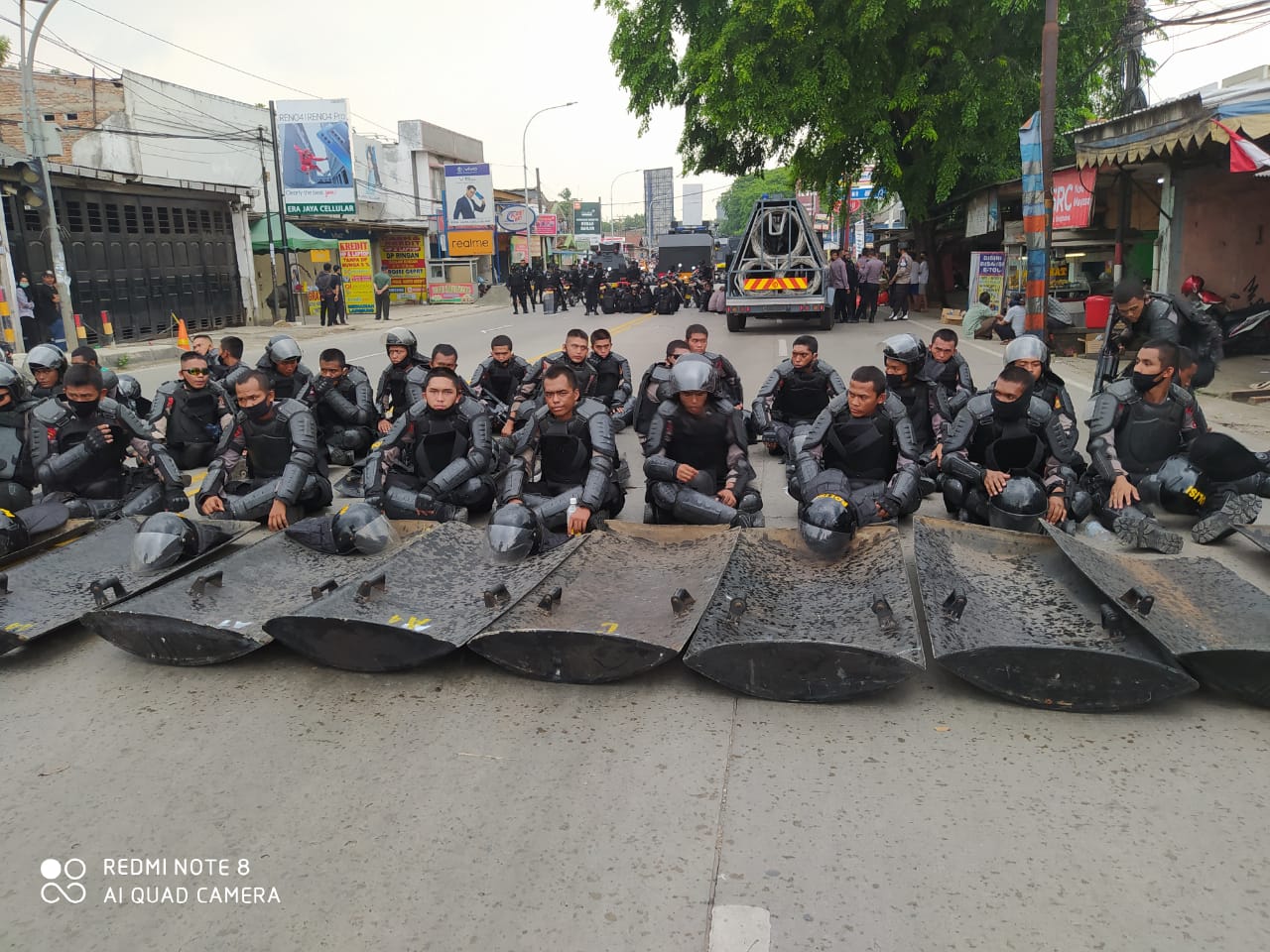 Peristiwa ini Kepolisian Polda Banten dan Polda Metro Jaya. mengerahkan ribuan aparat, dan mobil Barakuda serta mobil Water Canon yang menghalang para buruh untuk melintas.