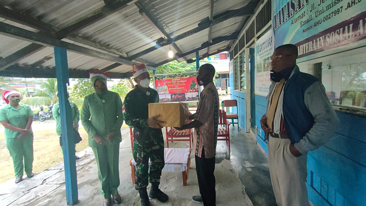 Biak Numfor – Komando Distrik Militer (Kodim) 1708 Biak Numfor membagikan bingkisan kepada Warga Panti Sosial dan Panti Asuhan menjelang perayaan Hari Natal dan Tahun Baru.