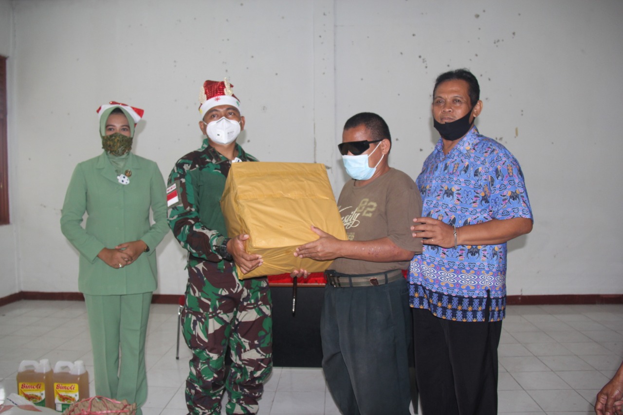 Komandan Kodim 1708 Biak Numfor Letkol Inf. Arif Setiyono bersama rombongan mengunjungi Yayasan Panti Sosial Bina Netra Cenderawasih dan Panti Asuhan Curahan Kasih. untuk membagikan bingkisan Natal.