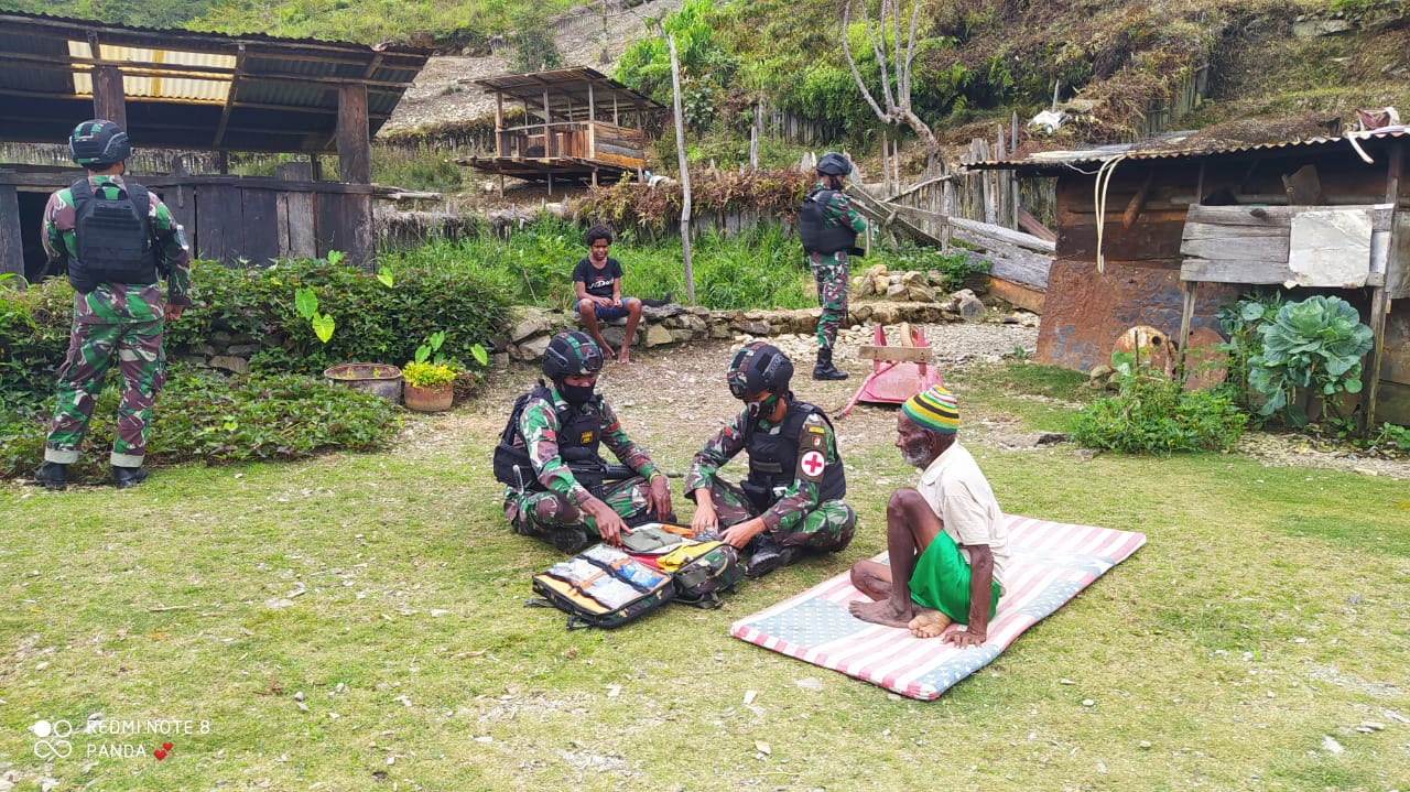 Puncak Jaya – Mengakhiri Tahun 2020 yang tinggal beberapa hari Batalyon Raider 500/SIkatan yang tergabung dalam satuan tugas pengamanan daerah rawan Papua sektor Puncak Jaya melaksanakan kegiatan pengobatan gratis kepada warga desa Wuyuneri Distrik Mulia Kab. Puncak Jaya, Senin (28/12/ 20).