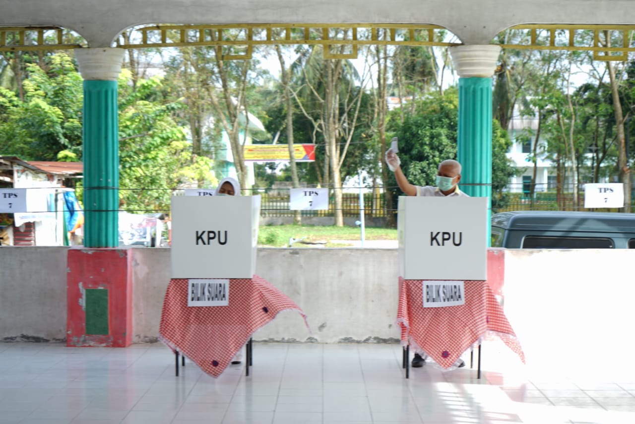 Asahan – Dalam mensukseskan pemilihan Bupati dan Wakil Bupati Asahan, Bupati Asahan H. Surya, BSc didampingi istri menggunakan hak pilihnya di TPS 7 Kelurahan Mekar Baru Kecamatan Kota Kisaran Barat, Rabu (09/12/2020).