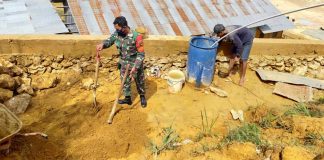 Supiori - Babinsa Koramil 1708-06/Supiori Utara Sertu Yan Pasiga bersama masyarakat kp. Yenggarbun melaksanakan karya bakti pembersihan lingkungan sekolah SD Yenggarbun Selas(05/01/2021)
