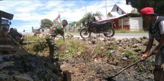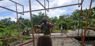 Supiori - Babinsa Koramil 1708-06/Supiori Utara Sertu Yan Pasiga bersama masyarakat kp. Yenggarbun melaksanakan karya bakti pembersihan lingkungan sekolah SD Yenggarbun Selas(05/01/2021)