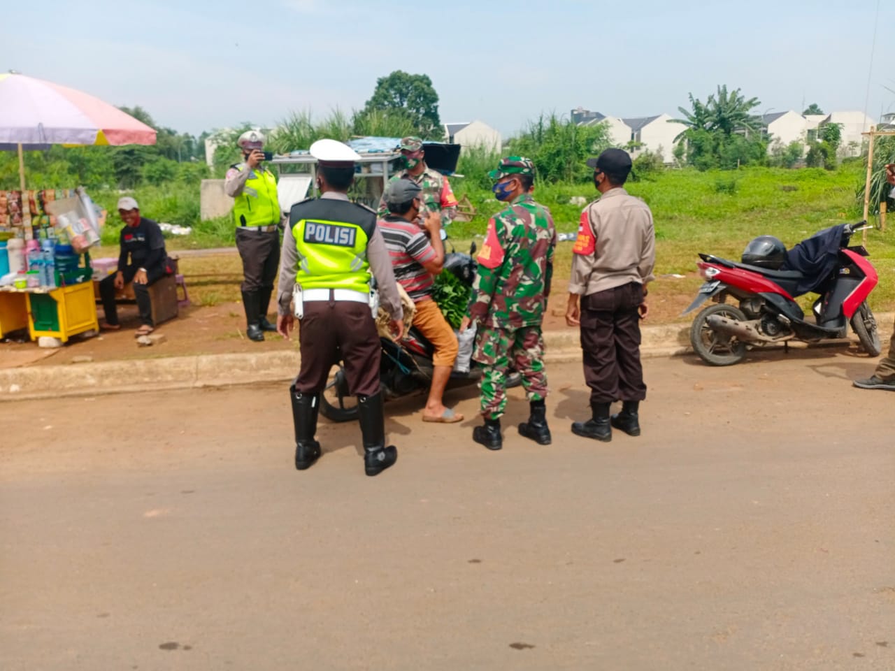 Operasi yustisi dan Penegakan Disiplin Mematuhi Protokol Kesehata (PDMPK) bertempat di depan perumahan Vinia Park Desa Pagedangan Kecamatan Pagedangan Kabupaten Tangerang.