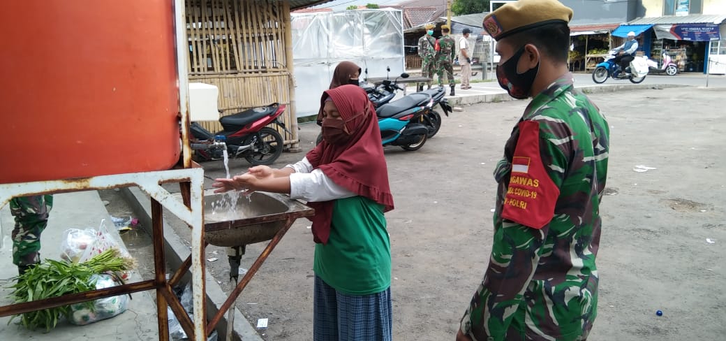 “Hari ini tim Satgas PDMPK gabungan Koramil 09/Mauk di pasar Mauk tidak di temukan warga yang tidak memakai masker, para pedagang dan pengunjung mentaati sesuai SOP kesehatan, seperti memakai masker, menjaga jarak dan tes suhu tubuh serta mencuci tangan sebelum masuk pasar,” ujarnya.