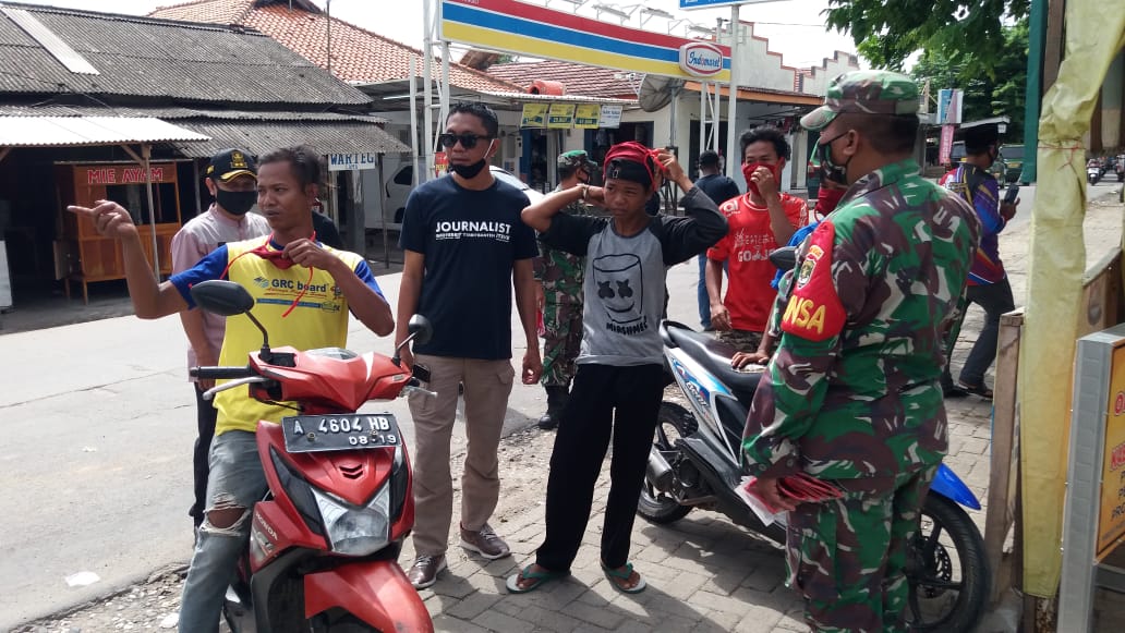 “Hari ini tim Satgas Covid 19 Koramil 07/Kresek bersama tiga pilar berhasil menghentikan laju kendaraan bermotor yang di kendarai muda mudi yang tidak dilengkapi protokol kesehatan tidak memakai masker,” ujarnya.