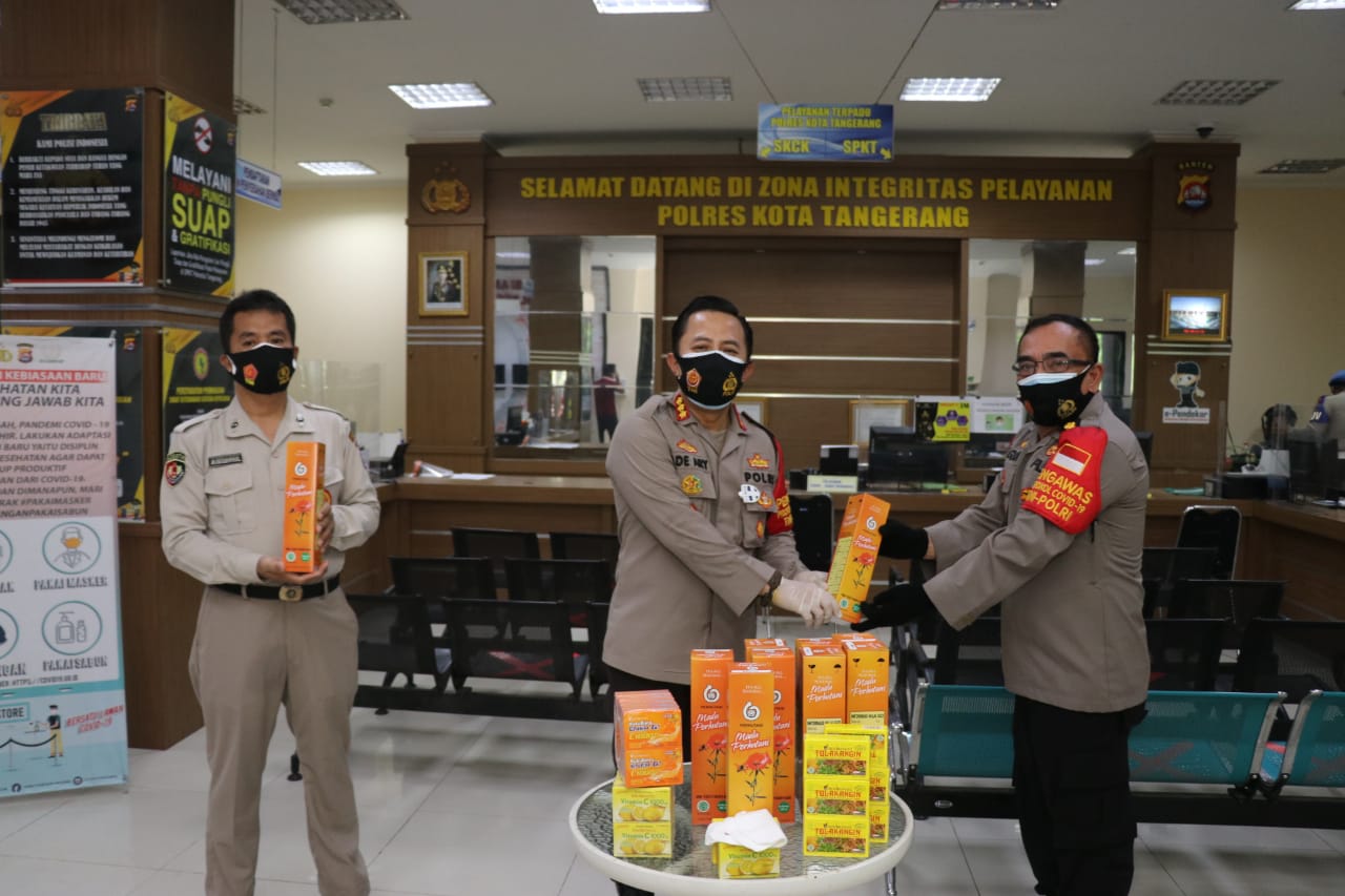 Kabupaten Tangerang – Guna meningkatkan kunerja anggota di masa pandemi, Polresta Tangerang Polda Banten memberi tambahan supelemen untuk anggota termasuk anggota polsek jajaran, Selasa (29/9/2020). Supelemen tambahan yang dibagikan ke anggota yaitu 3000 vitamin dan 1000 obat herbal Tolak Angin.