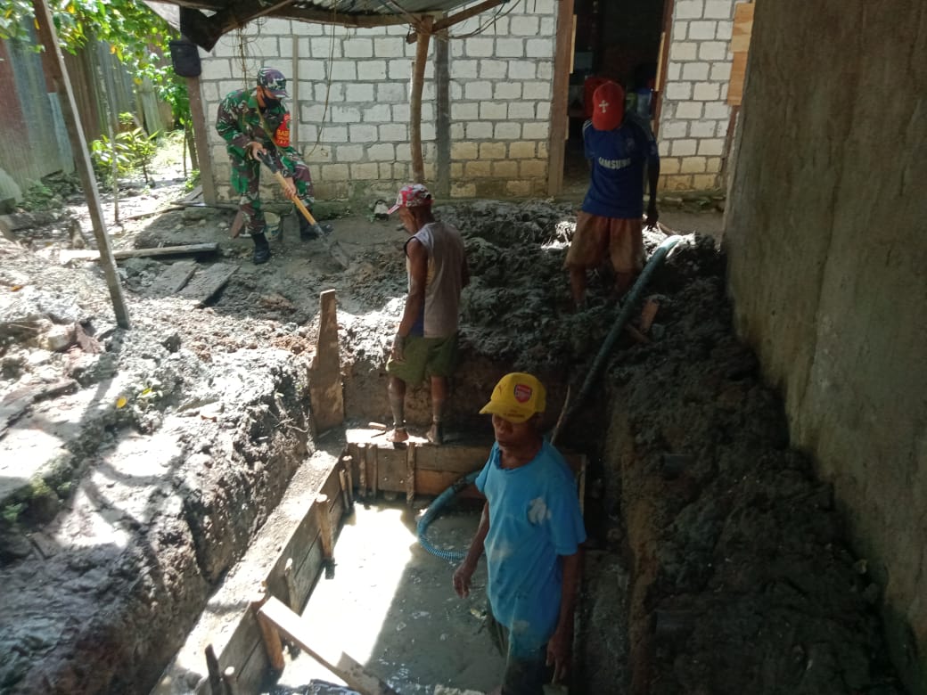 Kegiatan ini dalam pelaksanaannya, Babinsa bersama warga sekitar dan juga pemilik rumah saling bahu membahu dalam pembuatan septic tank tersebut, mulai dari penggalian lubang, pengecoran hingga penimbunan.