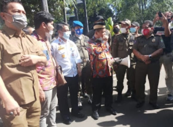 Kota Tangerang – Wakil Ketua I DPRD Kota Tangerang Turidi Susanto temui Himpunan Mahasiswa Islam (HMI) depan gedung Pemkot Tangerang terkait aksi demo mangkraknya Angkot Si Benteng di Terminal Poris Plawad Kota Tangerang, Selasa (8/12/20).